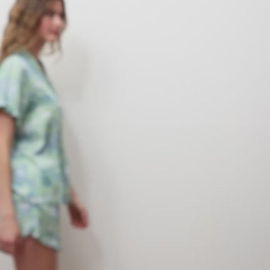 - Fit: Eco Satin short set with ruffles at the sleeves and hem. The shorts feature slightly curved hem and pockets.