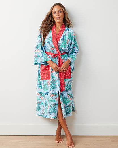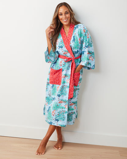 Frisky Firs - Lightweight Flannel Robe - Twinkling Blue